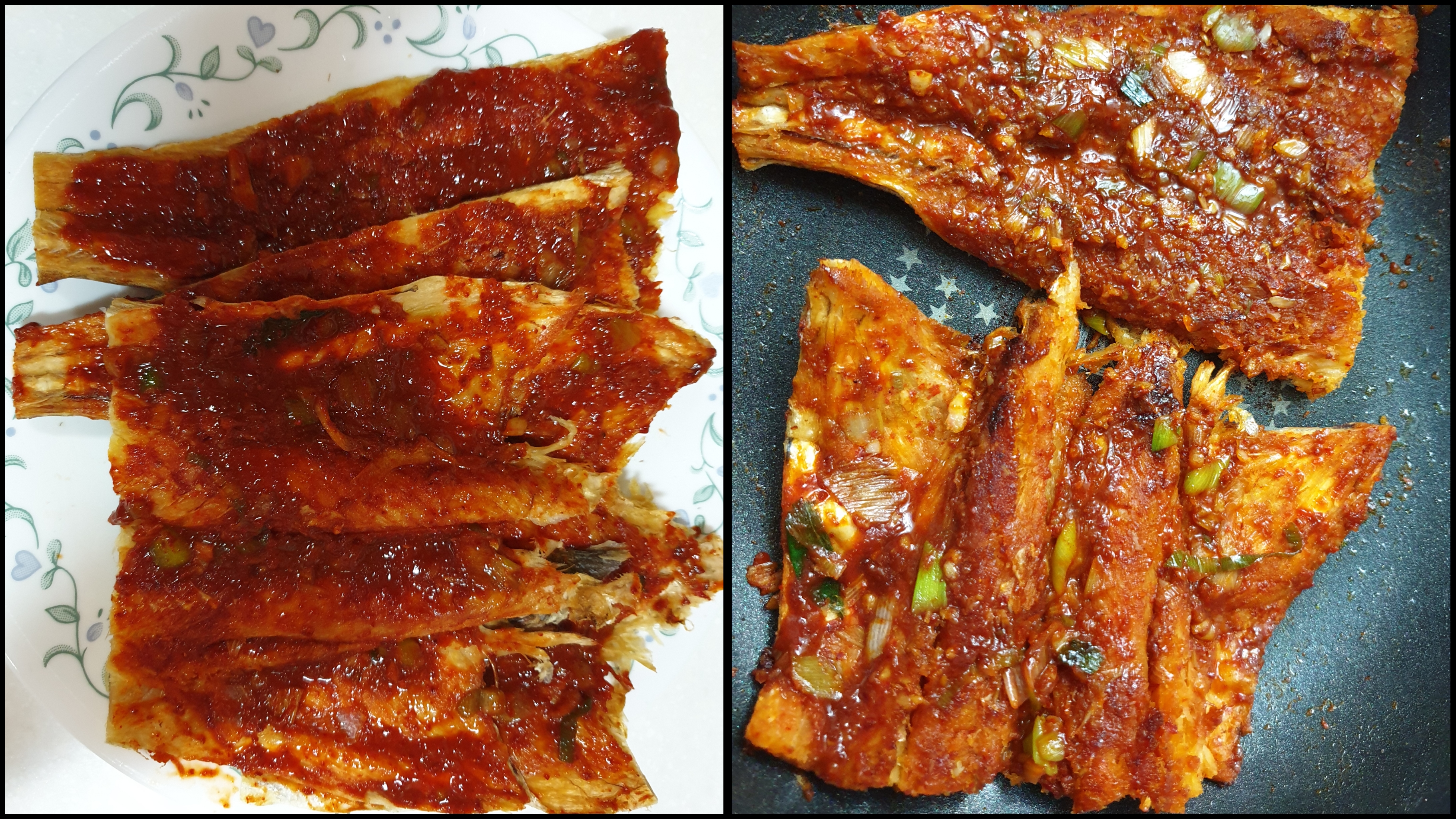 김수미 황태구이 레시피를 대충 따라서 만들어 보았습니다. 확실히 타지 않고 맛도 있습니다. 다음에 또다시 만들어 보려고 합니다. 한번 더하면 더 잘 만들 수 있을 거 같습니다.