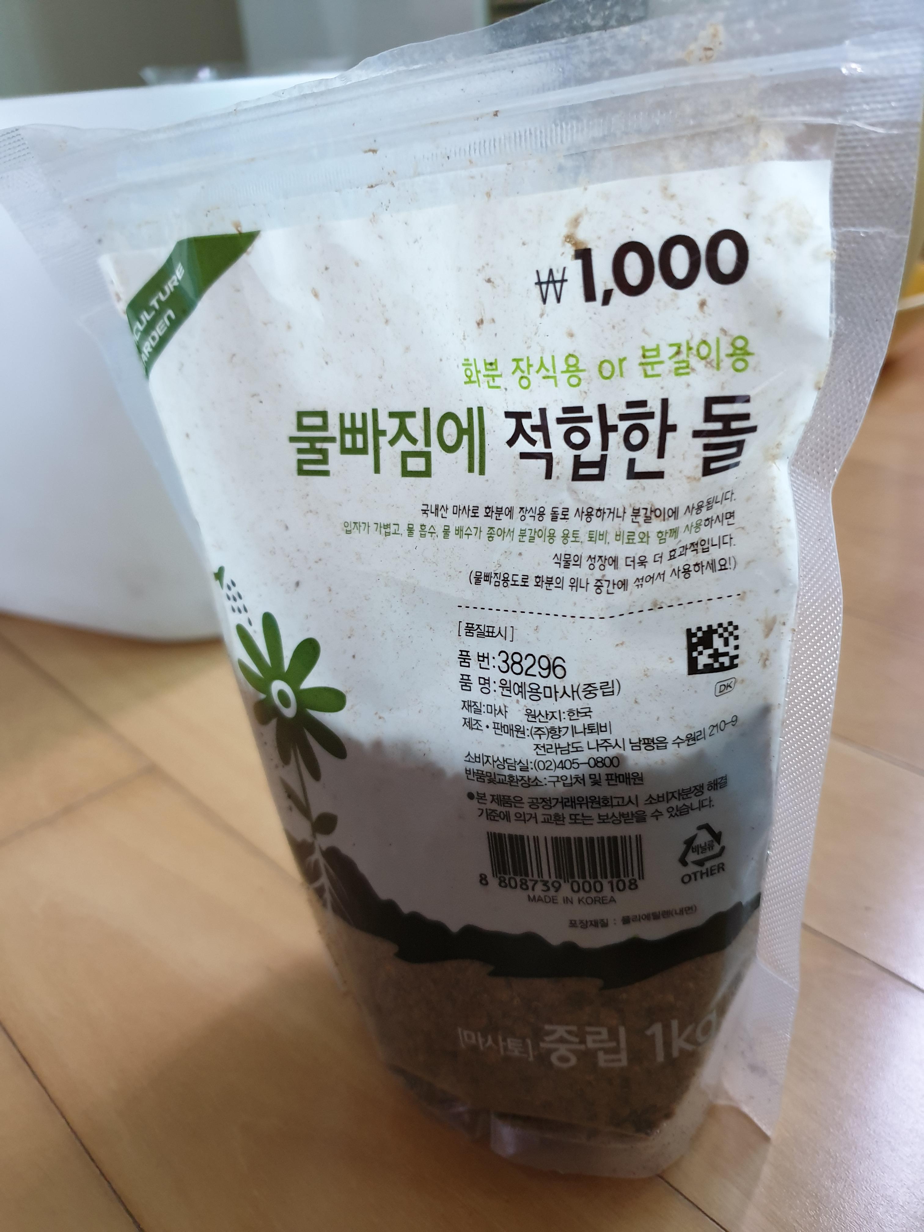 다이소에서 상토, 씨앗, 마사토, 화분, 화분 거름을 구입하고 시작했어요. 상추씨, 부추씨를 사봤네요.
