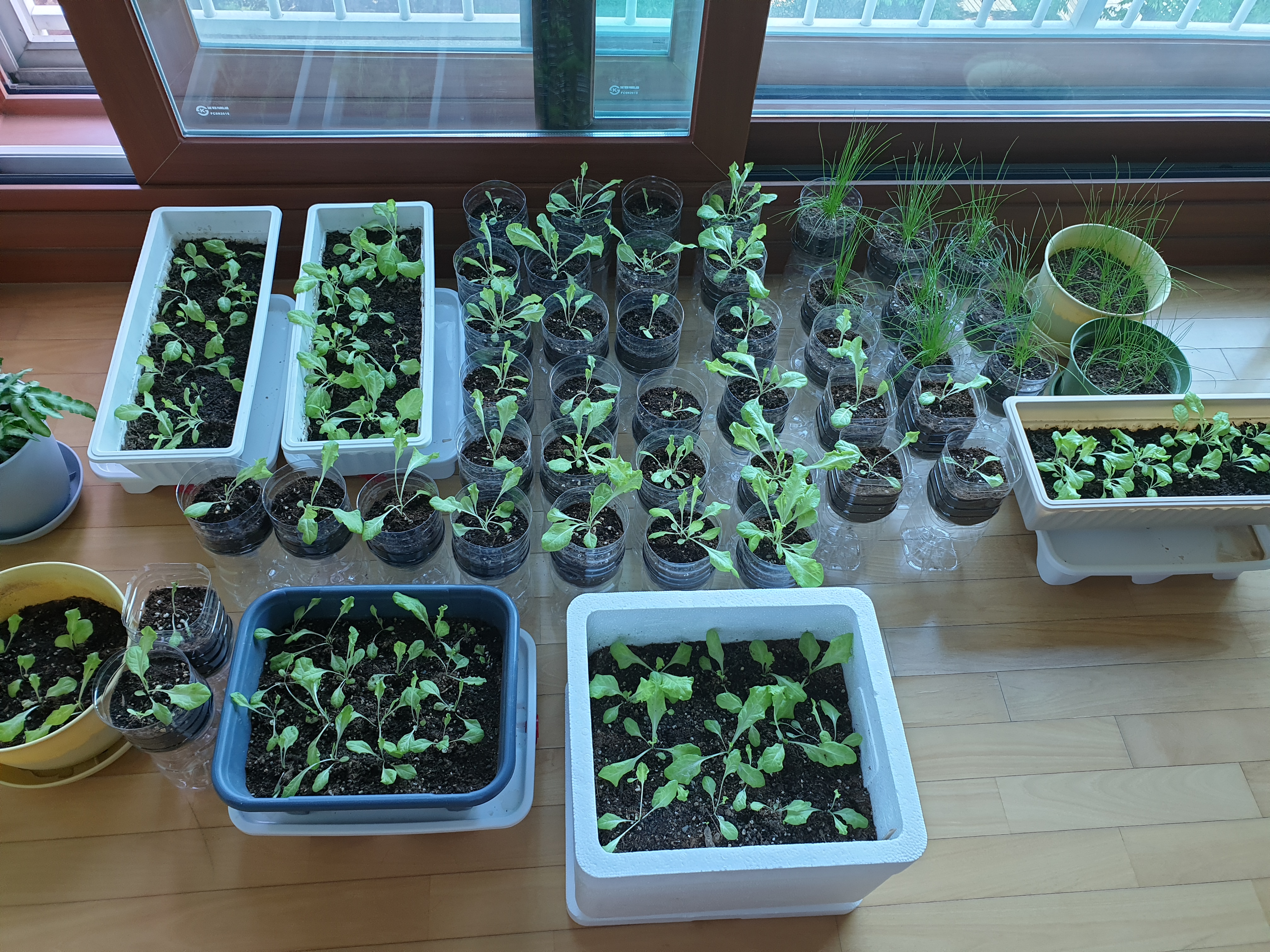 꽃상추를 심었는데 햇볕과 바람이 부족한지 야리야리한 새싹 채소가 되었어요. ㅎㅎ
